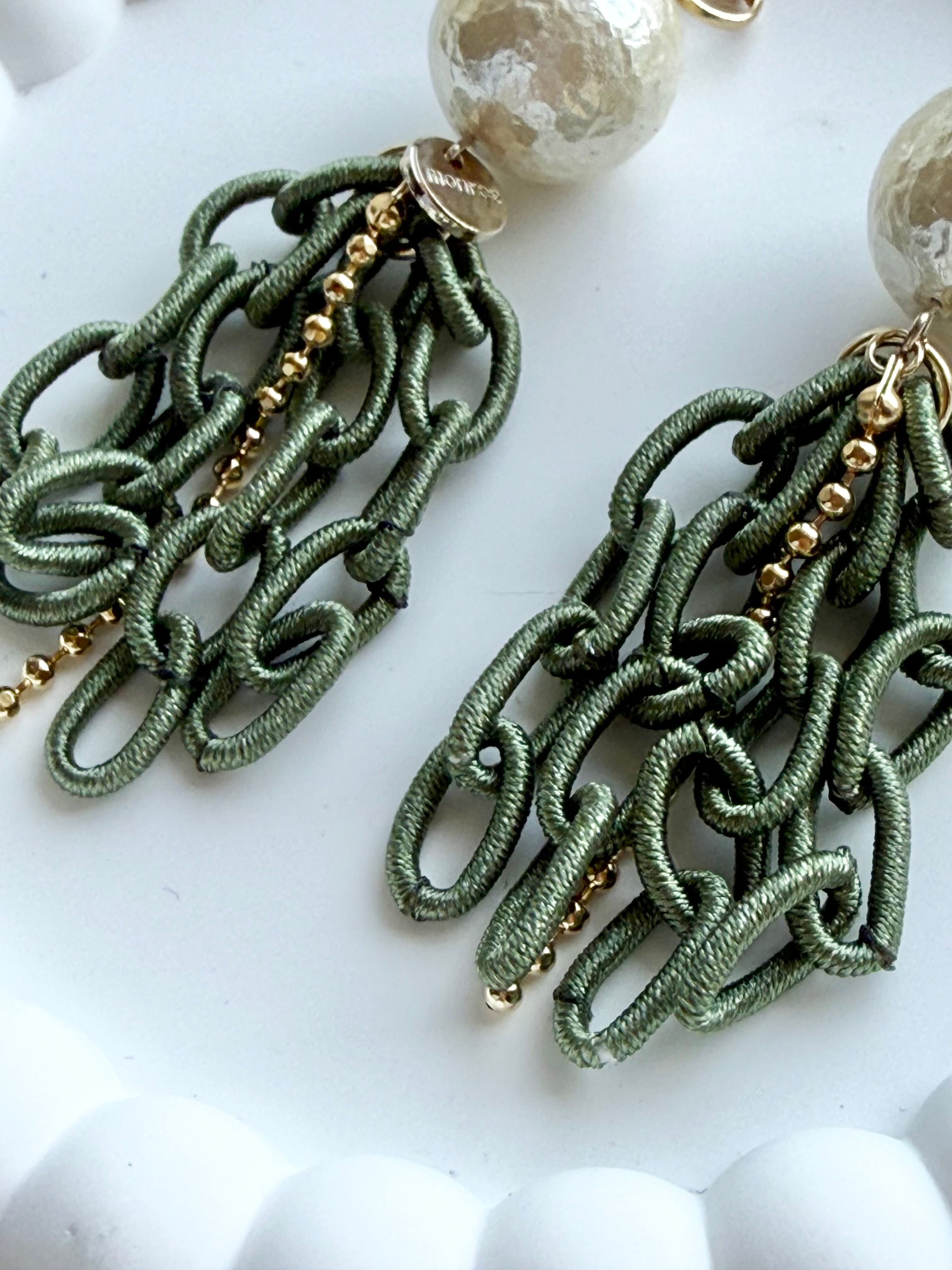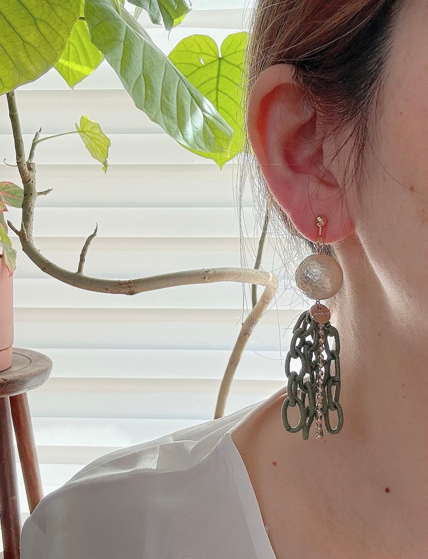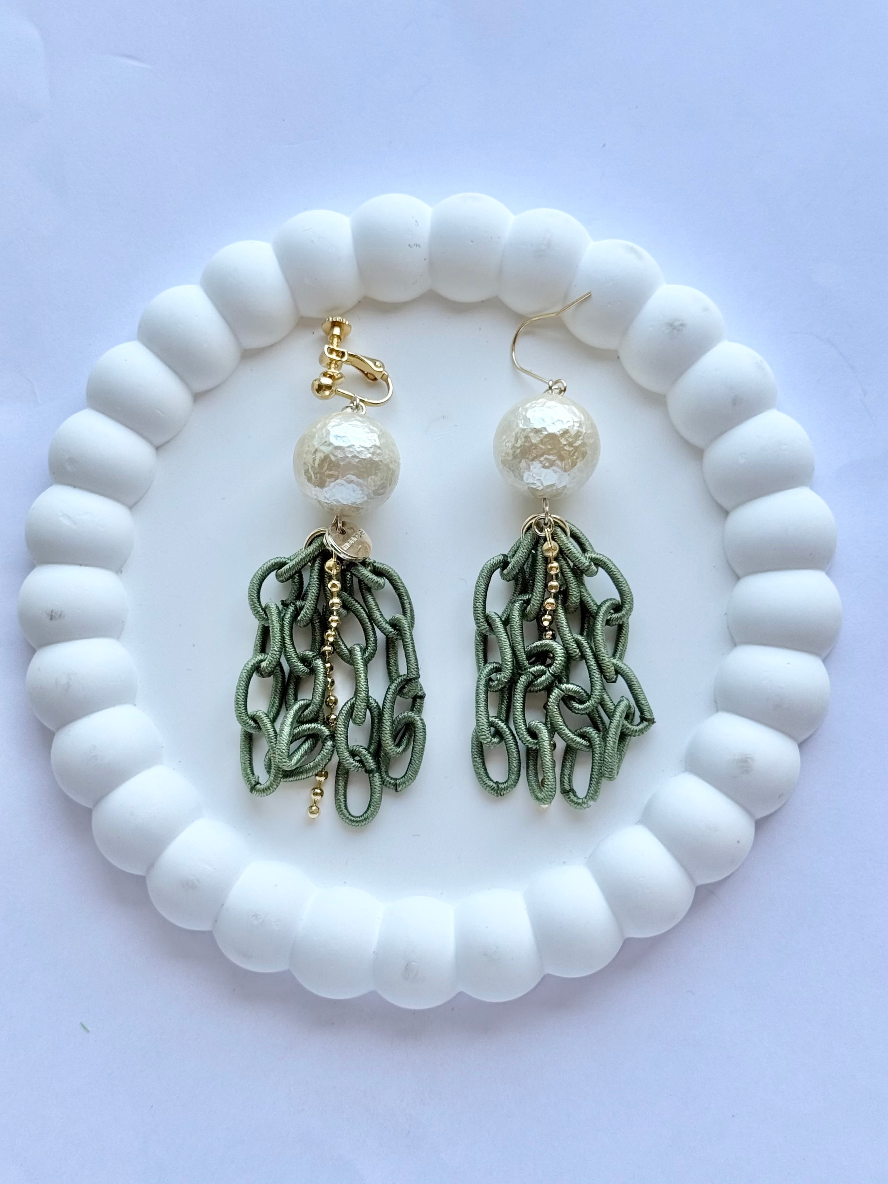ポリエステルのチェーンを使った耳飾り。