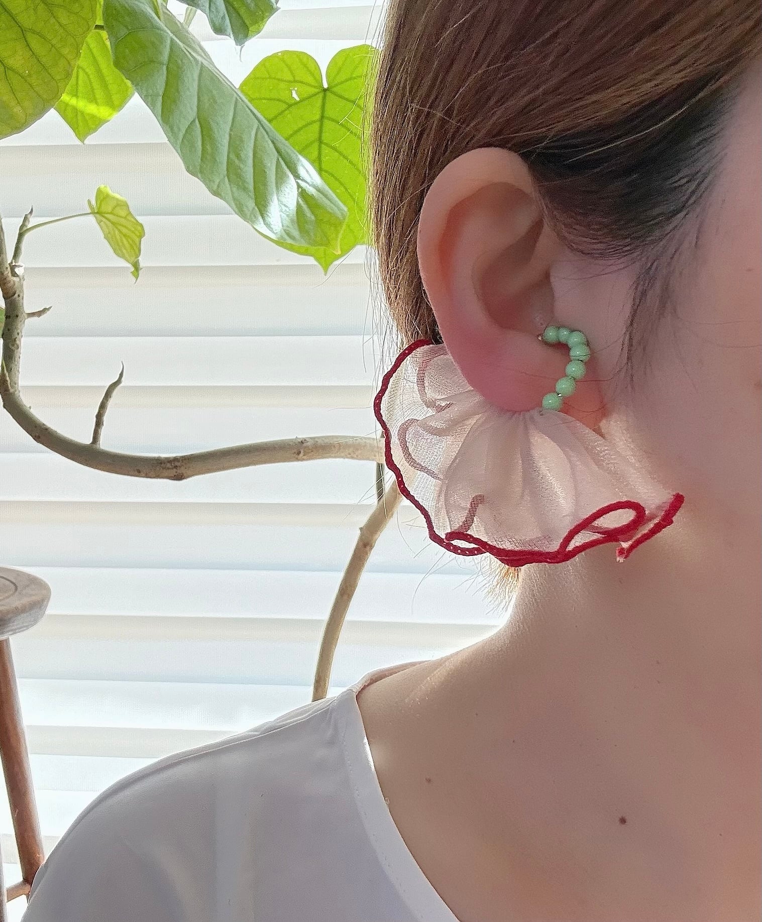 可愛らしいフリルが存在感のあるイヤーカフ。