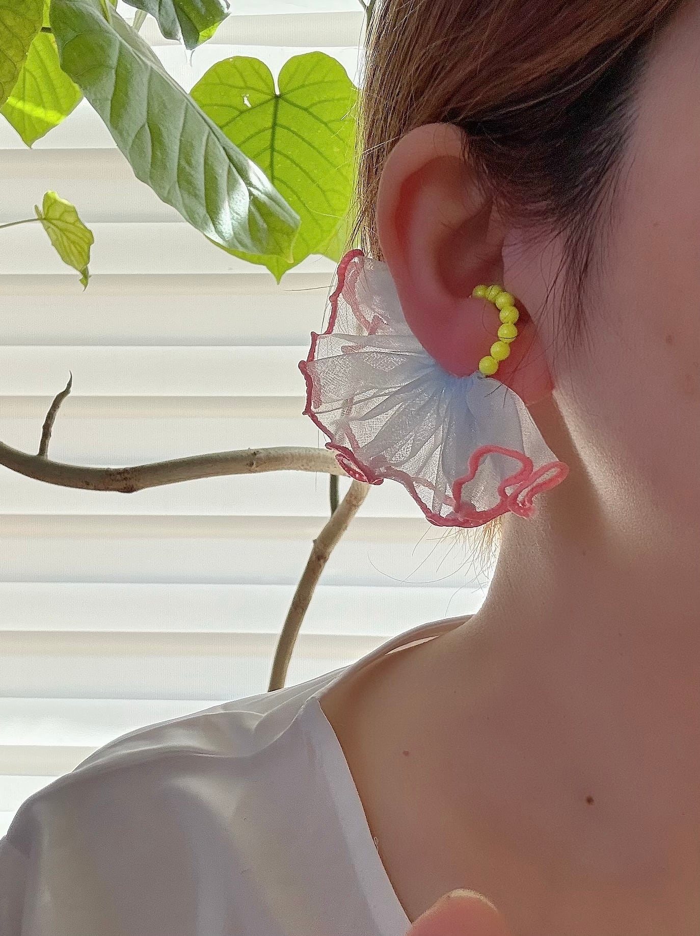 可愛らしいフリルが存在感のあるイヤーカフ。