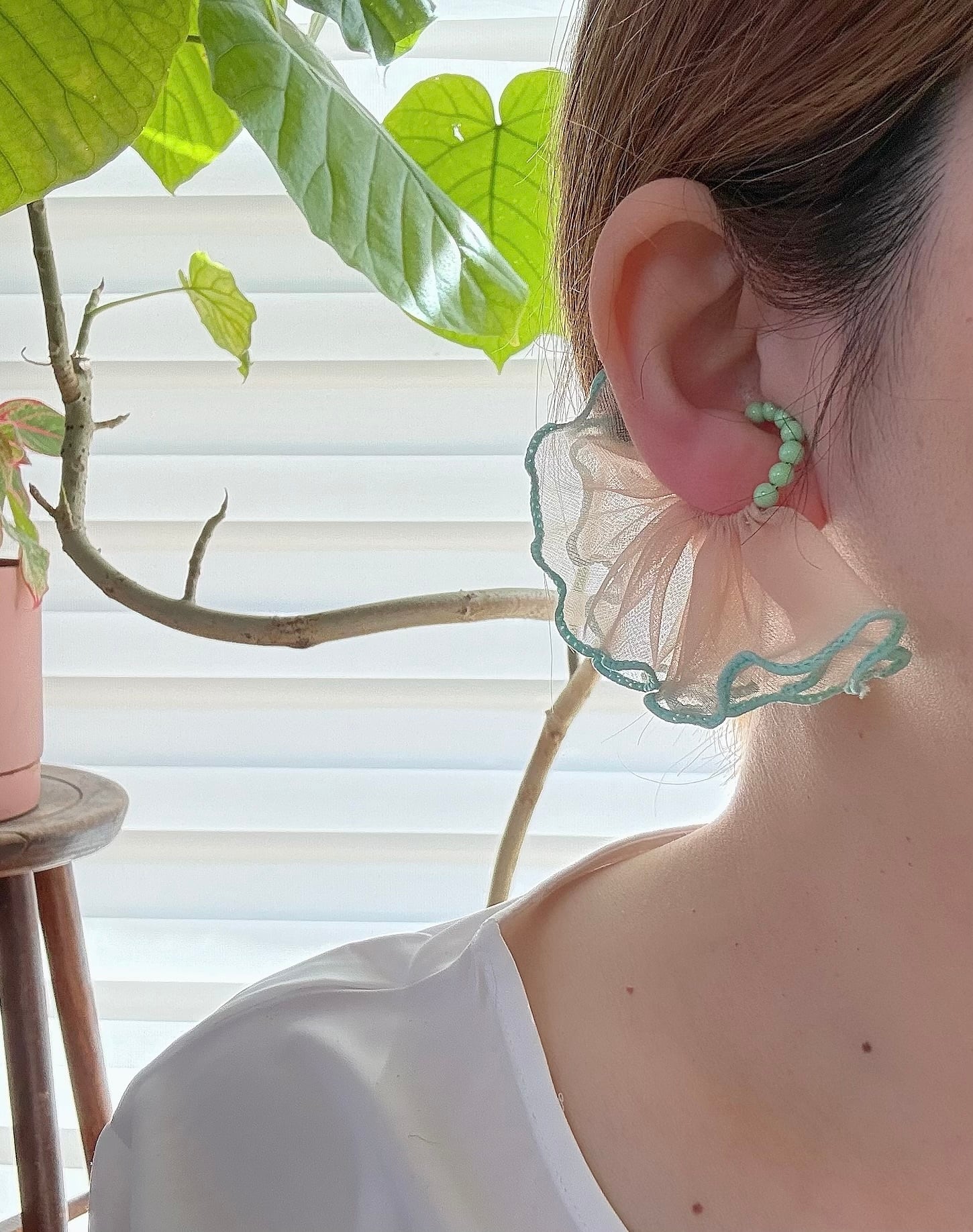 可愛らしいフリルが存在感のあるイヤーカフ。