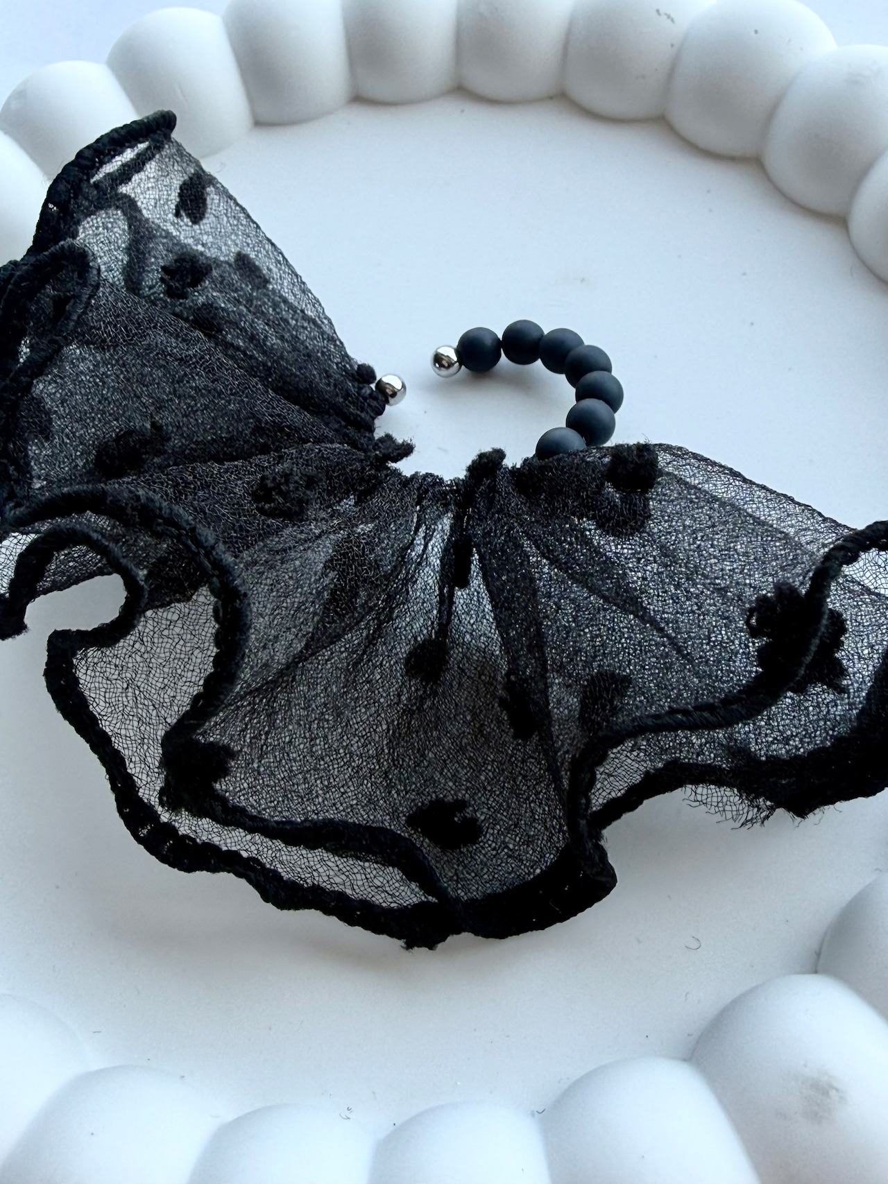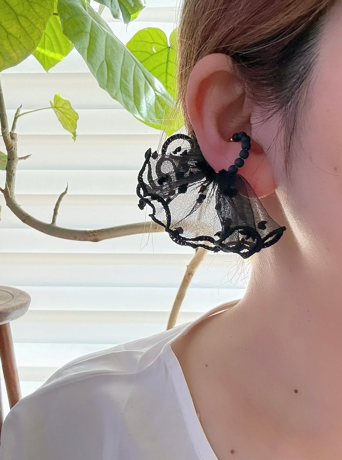 可愛らしいフリルが存在感のあるイヤーカフ。
