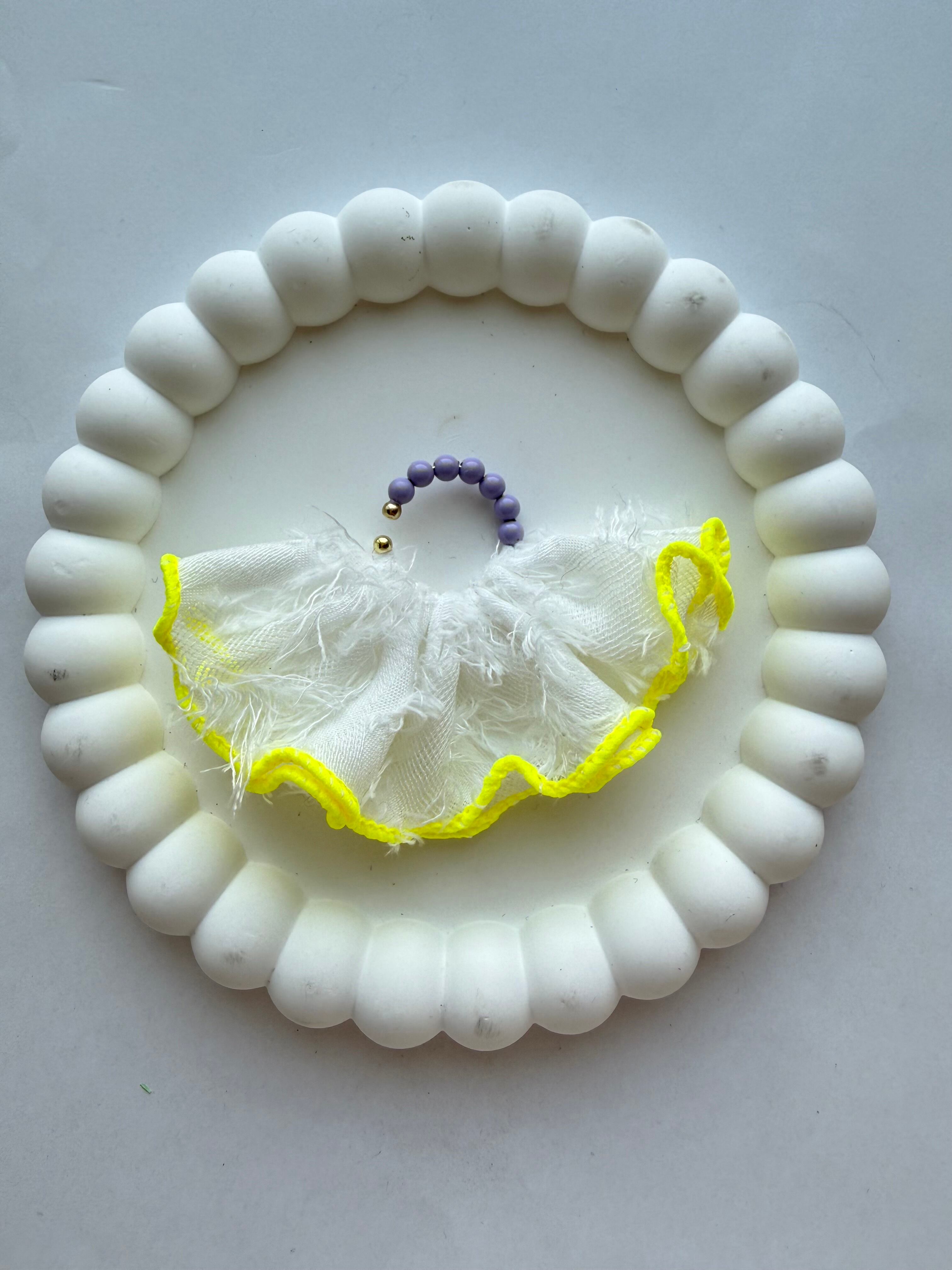 可愛らしいフリルが存在感のあるイヤーカフ。
