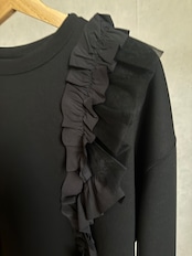 フリルには2種類の素材を使い、甘すぎない、大人にあうデザインにしています。