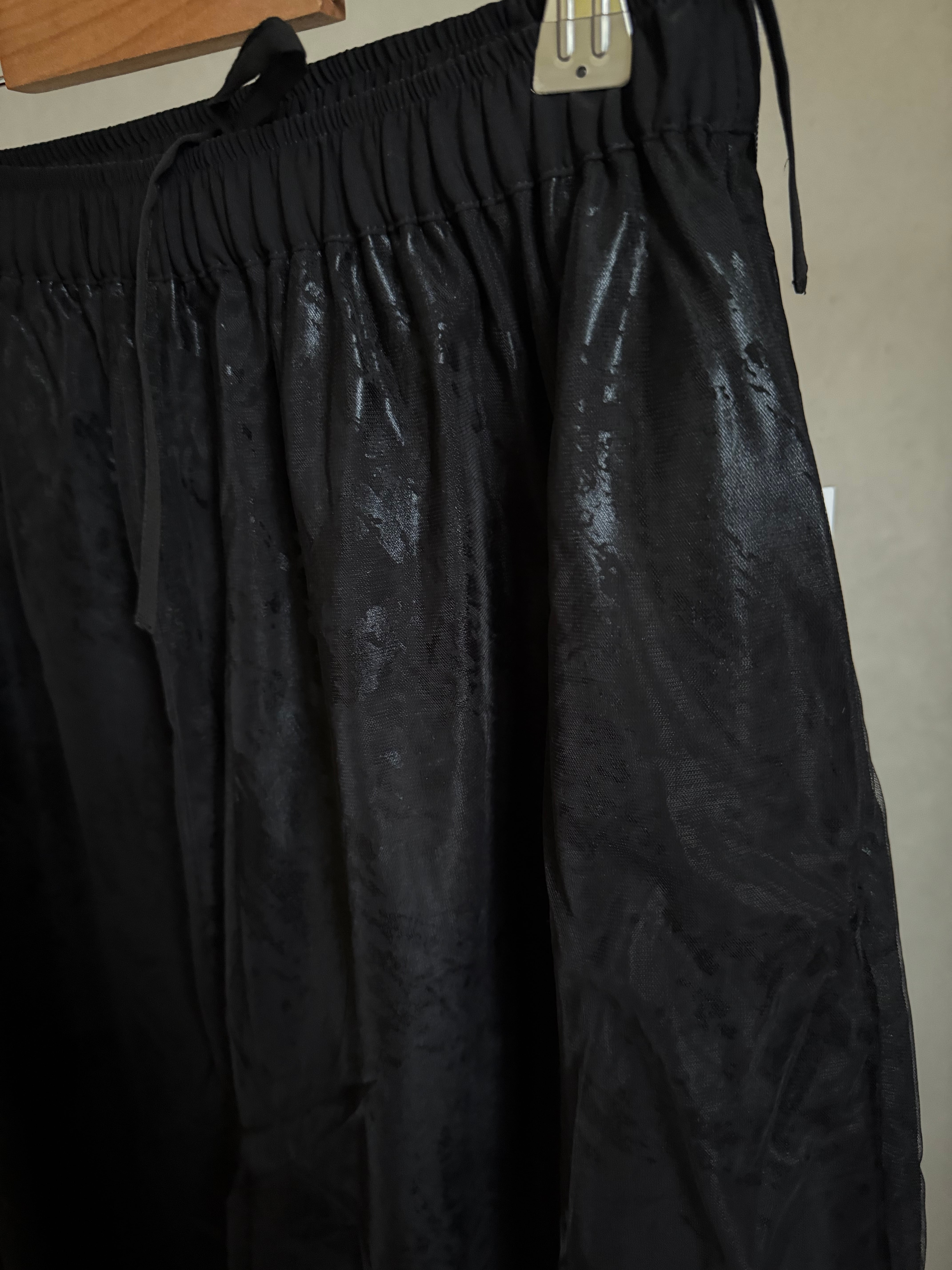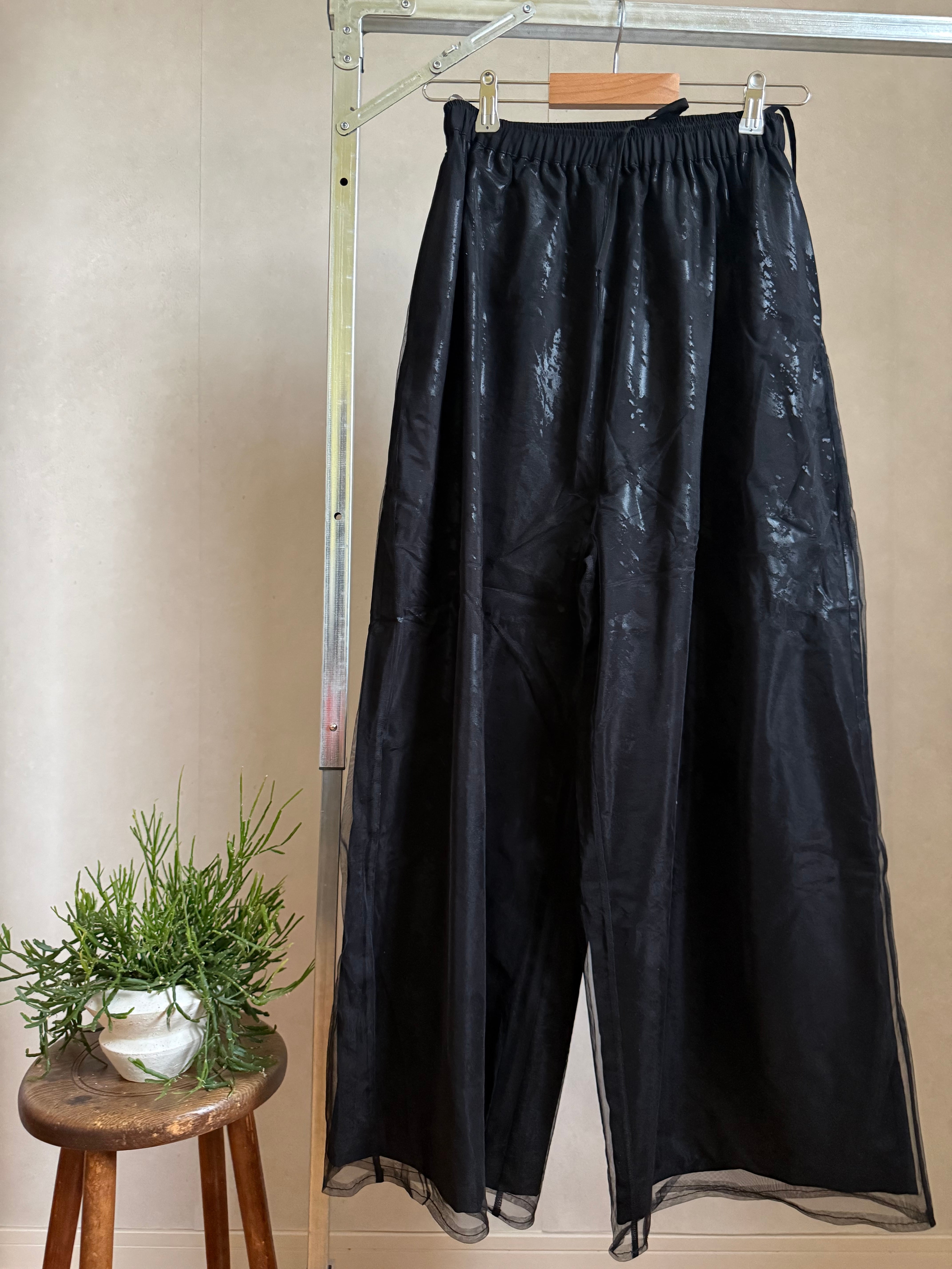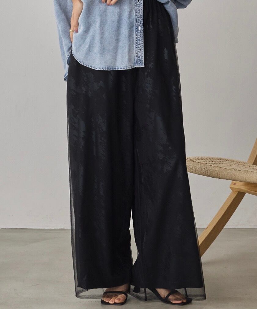 ジョーゼット箔プリント チュールレイヤードパンツ BK